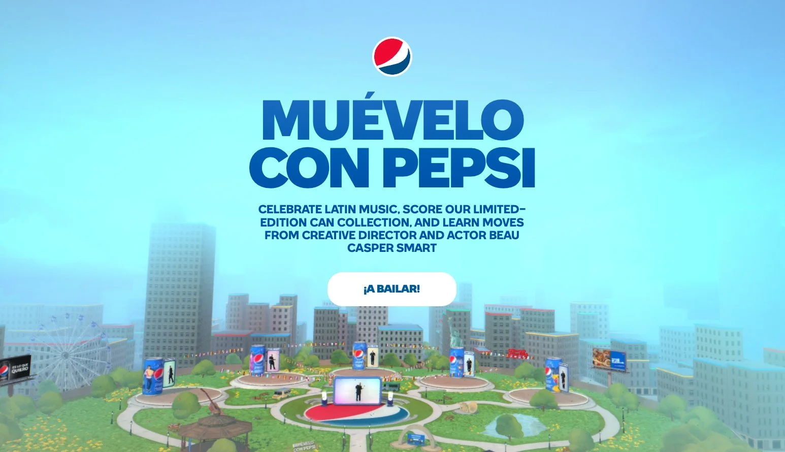 Building an one-click-and-in Pepsi dance world incorporating the language and style of Latin culture.